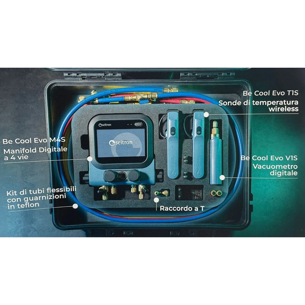 Il Seitron BE COOL EVO Digital Manifold Smart Al centro del sistema troviamo il Be Cool EVO M4S, il manifold digitale a 4 vie che consente una gestione completa delle pressioni, delle temperature e dei parametri operativi dell’impianto.